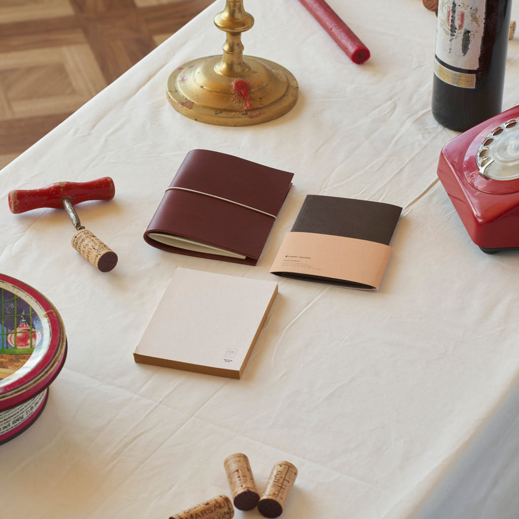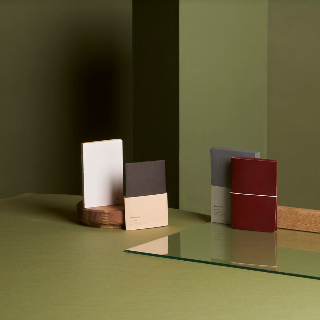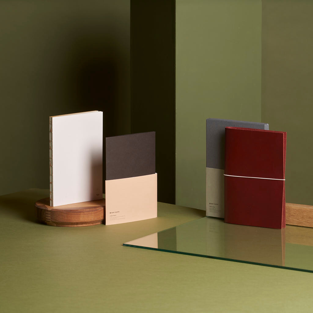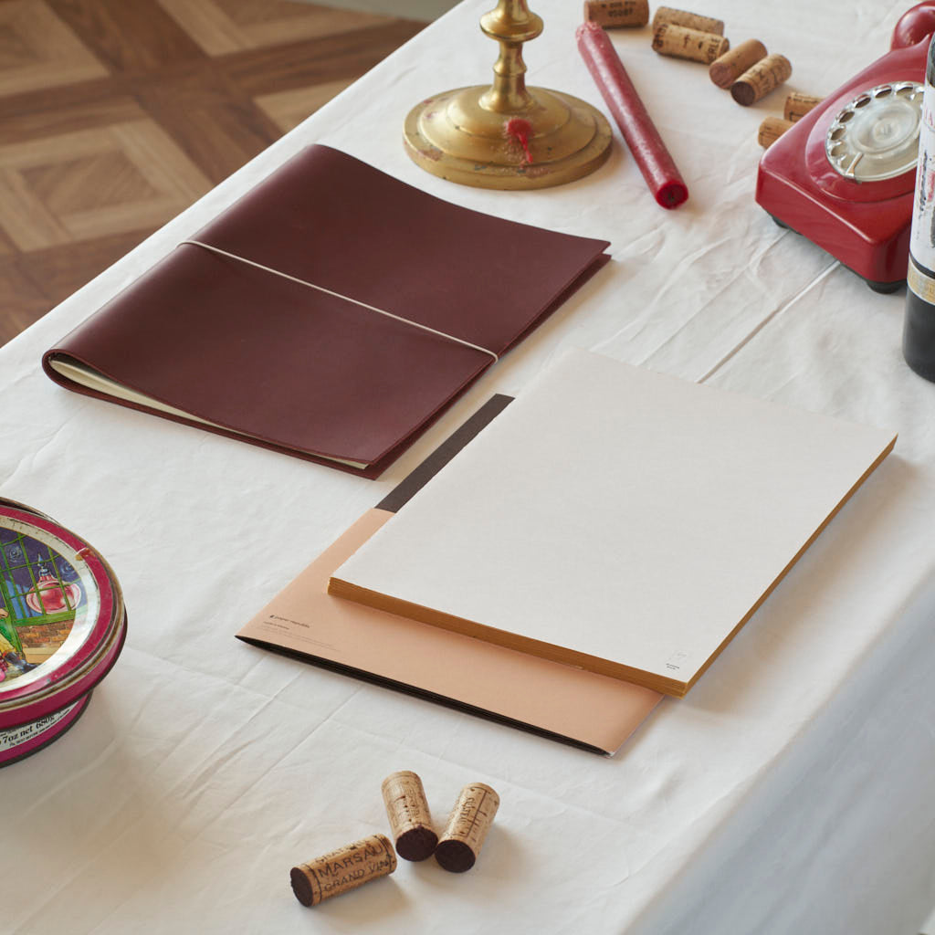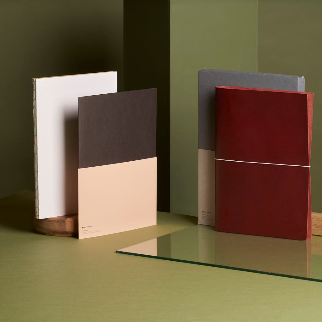 the pages are edge finished by hand, the thread is coloured, and we’ve left the 240 g/m² fine-grain front-cover plain, so you can personalise it as you like