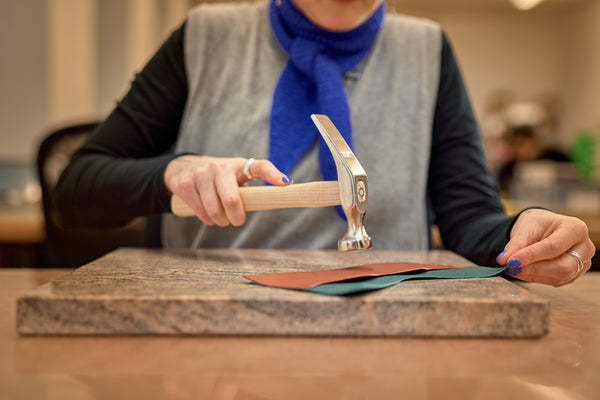 [the library] is a bright, open space under a glass roof, filled with plants that make it feel a little like a greenhouse. There are long tables for cutting, gluing, hammering, and burning leather, as well as rows of industrial sewing machines that help bring your leather goods to life.