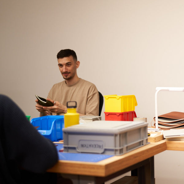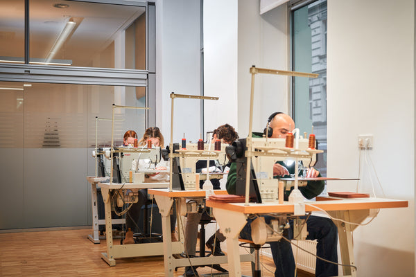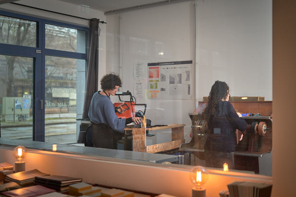 Welcome to [the library]. Our workshop and the place where all of paper republic’s sewn leather products are made. It’s also where you’ll find our l’atelier bespoke team, creating custom pieces side by side with the rest of the crew.