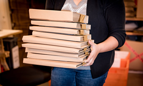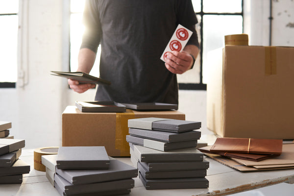 The space earned its name thanks to its soaring ceilings, reminiscent of a cathedral. It’s large enough to hold a second, lofted floor that serves as our warehouse, where the team stores products and unloads shipments of leather and paper.